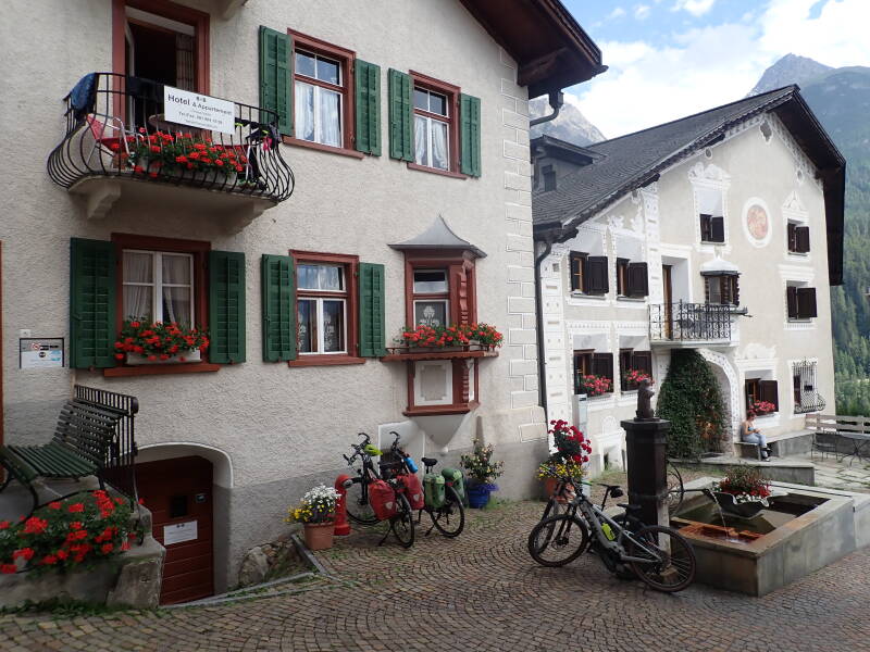 Scuol - rechts Brunnen mit erzhaltigem Wasser